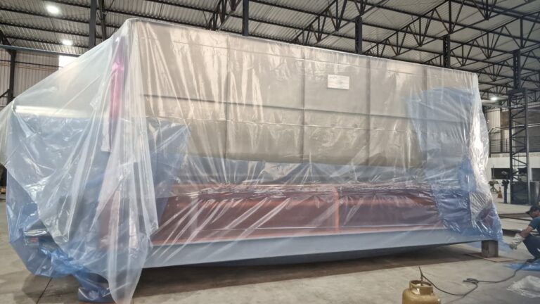 A embalagem termoretrátil consiste na aplicação de um filme plástico especial que, ao ser aquecido, se molda perfeitamente ao redor da carga, criando uma camada firme e estanque. É uma solução moderna, muito utilizada em indústrias que precisam proteger maquinários, equipamentos e componentes sensíveis contra fatores externos como umidade, poeira, raios UV e maresia.